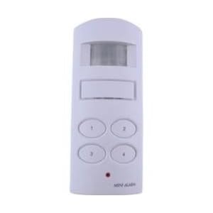 This compact motion sensor will detect anyone who tries to enter the protected area. If motion is detected an effective 130 dB alarm will sound to scare off of the intruder and alert others for a dependence on help. The owner may arm or disarm the machine using a programmable security code. Ideal to safeguard home, retail store, office, or hotel room. Requires four AA batteries.